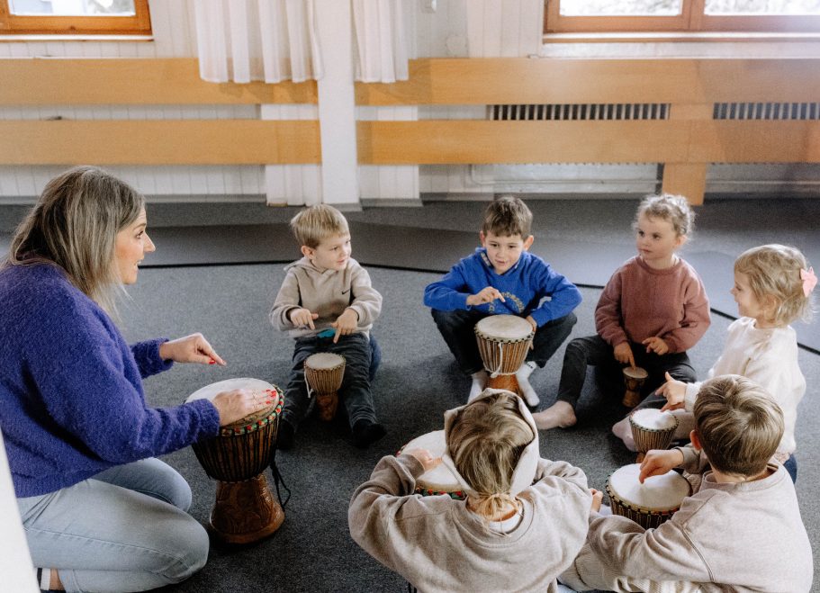 Mit Liedern, Bewegungsspielen, Geschichten und einfachen Orff- und Rhythmusinstrumenten fördern wir Taktgefühl, Konzentration und kreativen Ausdruck. Themen aus dem Jahreskreis, Feste und Rituale geben Orientierung und schaffen eine vertraute, sichere Atmosphäre.