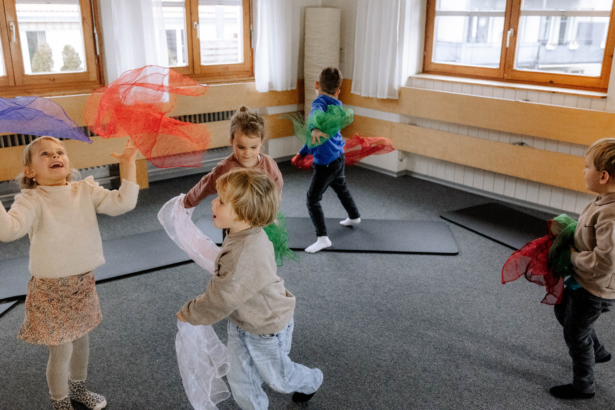 In einer kleinen, vertrauten Gruppe erleben wir eine liebevolle musikalische Früherziehung, die alle Sinne anspricht. Mit Liedern, Kniereitern, Fingerspielen, Tänzen, Bewegungsspielen und einfachen Instrumenten tauchen die Kinder ganz natürlich in musikalische Abläufe ein. Materialien wie Tücher und kleine Klangideen fördern Fantasie und Kreativität.