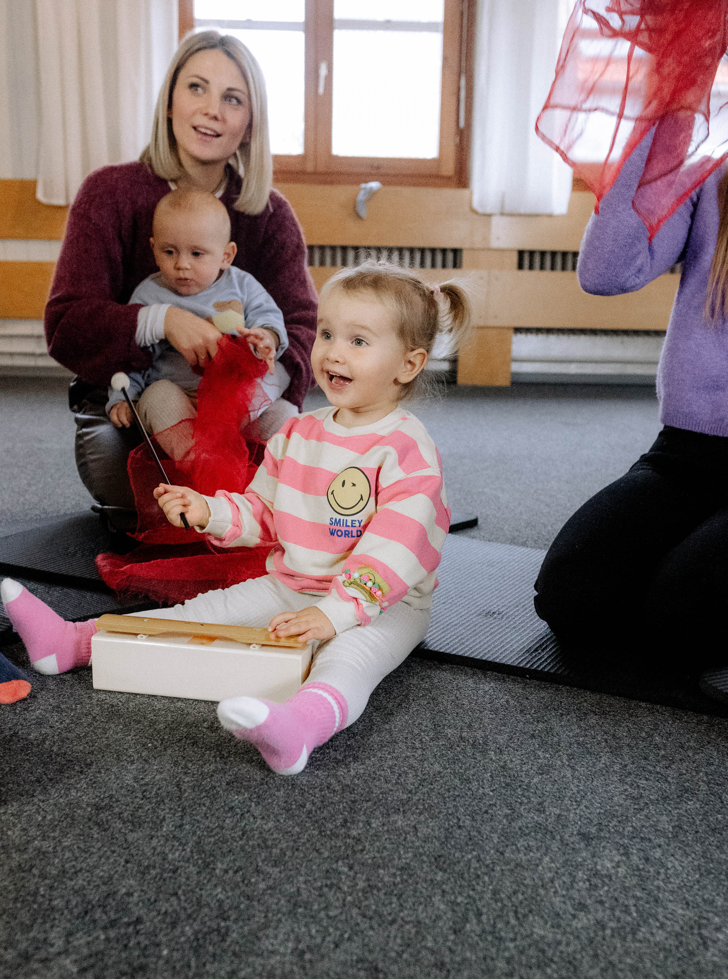 Im Musikgärtle entdecken Kinder gemeinsam mit Mama, Papa oder einer anderen Bezugsperson spielerisch die Welt der Musik, Bewegung und Sprache.