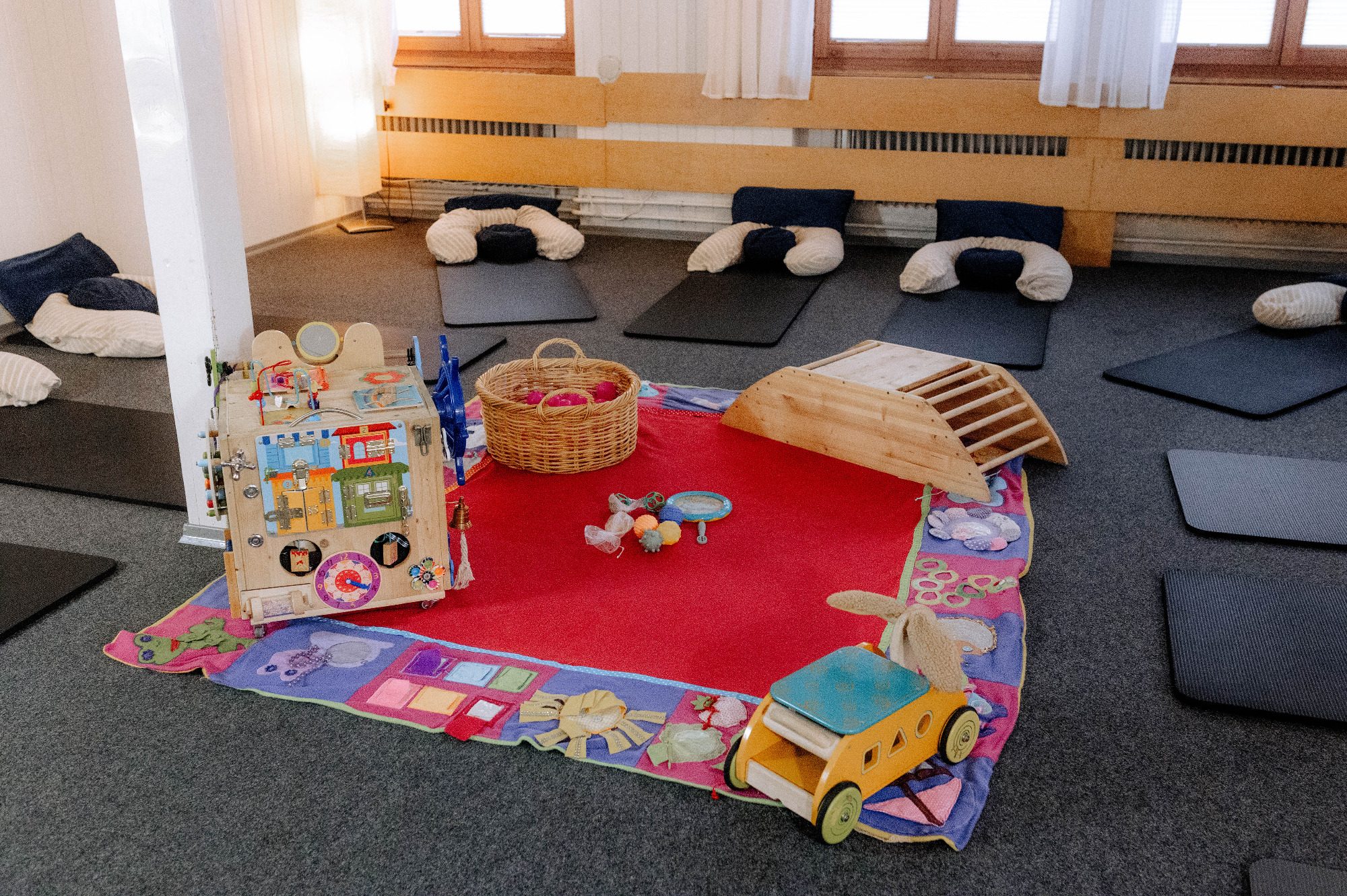 Da dieser Kurs bewusst auf die Bedürfnisse der Mutter ausgerichtet ist, ist es – wenn möglich – empfehlenswert, ohne Kind zu kommen. So haben Sie Raum für sich und Ihren Körper.